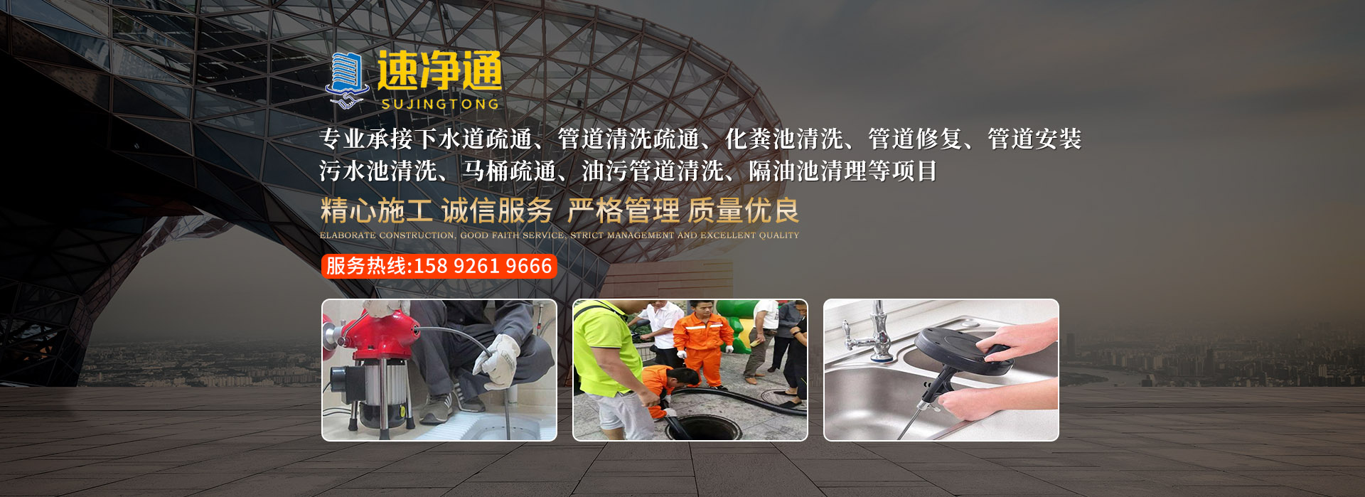 四川速凈通管道疏通有限公司主要承接下水道疏通、管道清洗疏通、化糞池清洗、管道修復、管道安裝、污水池清洗、馬桶疏通、油污管道清洗、隔油池清理等項目。有疏通及清洗設備,有施工隊伍,對各種疑難管道堵塞,故障排除有獨到的處理方法。 公司本著一切以顧客滿意為標準,用我們的服務為每一位新老顧客排憂解難,為社會帶去一片清潔。您的滿意是我們永遠的承諾!